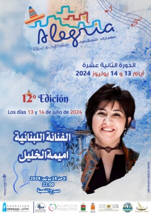 تختتم الفنانة اللبنانية أميمة الخليل فعاليات مهرجان أليغريا في شفشاون بحفل غنائي مساء اليوم يشهد تكريما خاصا عن مسيرتها.