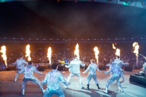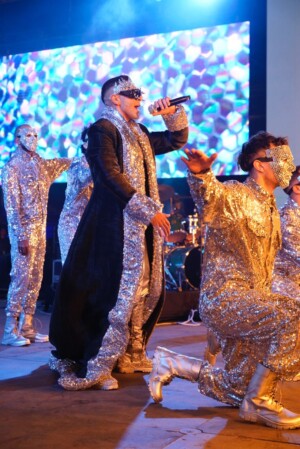 واستهل حسن أبو الروس الحفل بدخول غير متوقع شبيه بدخلات حلبات المصارعة عبر تظليم الأجواء والخروج من داخل شاشات العرض المرئية في “دخلة” هي الأولى من نوعها في تلك السهرة، وختمها بالعرض الاستعراضي لأغنيته الشهيرة “مليونير”، ليترك الساحة مشتعلة من حماس الجماهير.